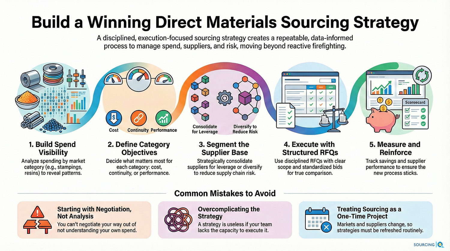 If your strategy can’t survive a busy quarter, it’s not a strategy—it’s a wish list. Here’s what we recommend to our clients when it comes to building a direct materials sourcing strategy.