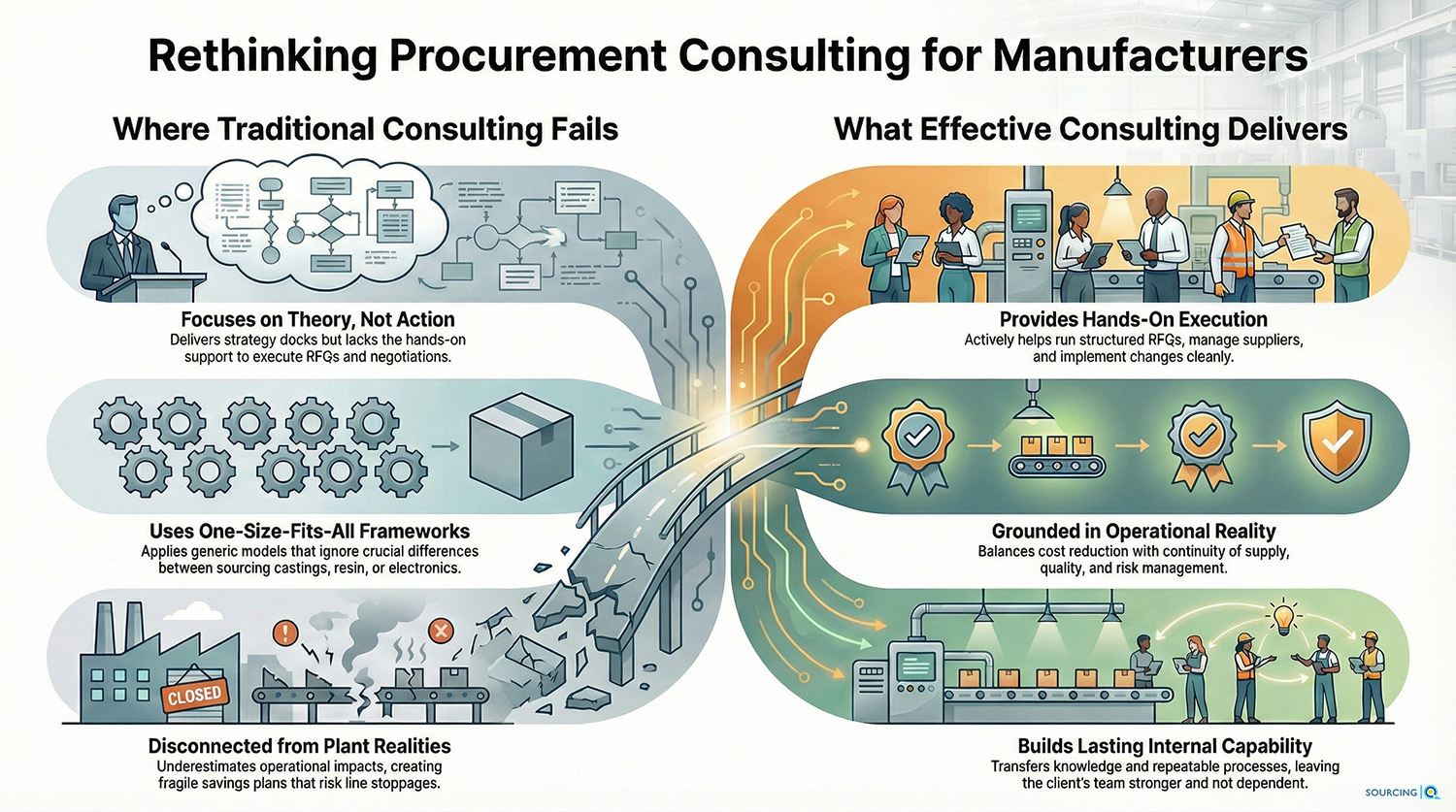 A practical look at procurement consulting for manufacturers—what works, what doesn’t, and how execution-focused support drives real results.